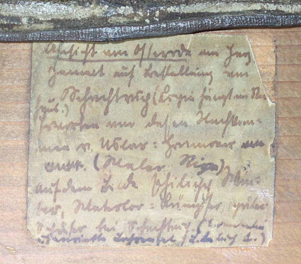 Eindruck. Nach der kaum lesbaren Notiz von alter Hand, die auf den Keilrahmen