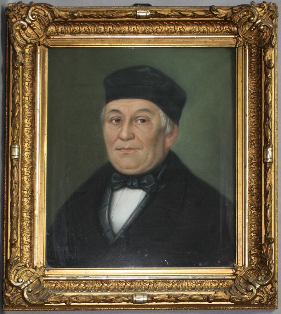 74 Porträt. Bürgerporträt. Wiegmann, Heinrich Friedrich Ernst. Pastellmalerei (Mischtechnik) auf Papier, nicht signiert und datiert. Arbeit aus den 1860er Jahren. Bildgrößen 37,5 x 45,5 cm, Rahmengrößen 55 x 62 cm (Hochformat). (71)