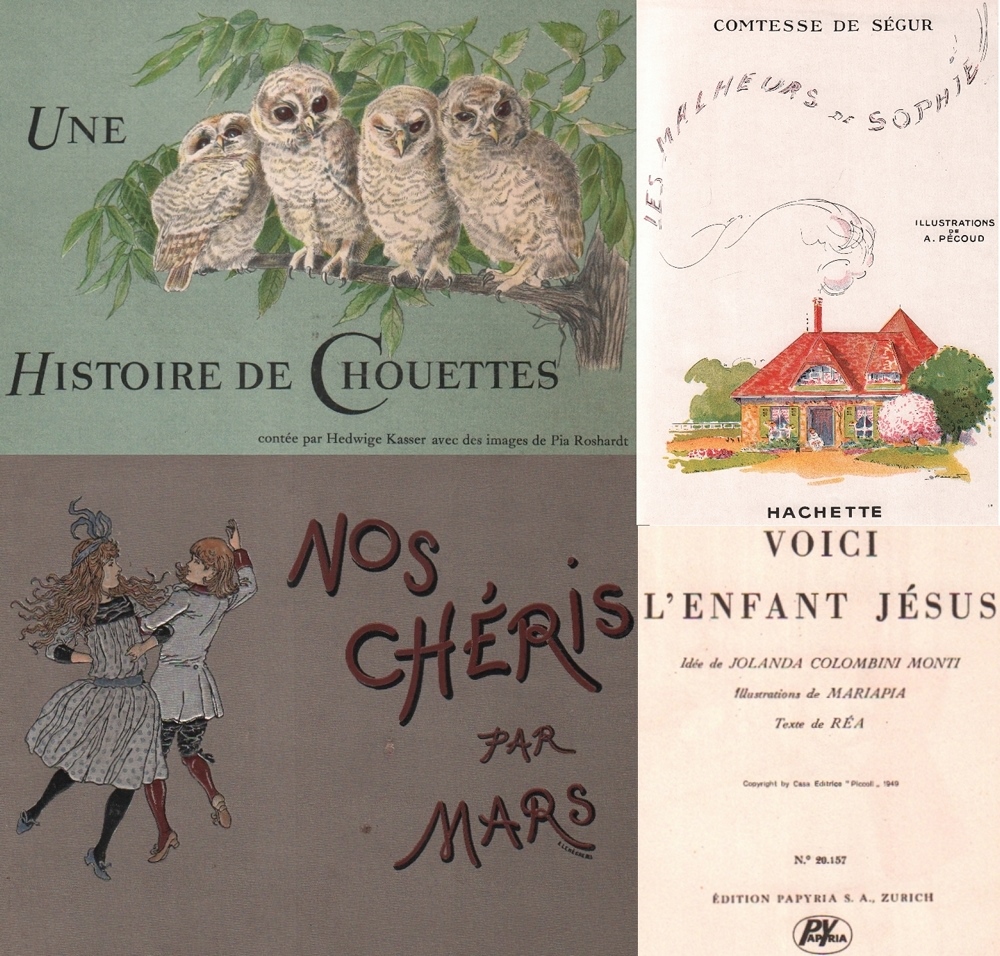154 Kinderbuch – Konvolut mit 4 Exemplaren in französischer Sprache. Verschiedene Verlage und Jahre. Überwiegend 4°. Mit Abbildungen. Farbige Papp- bzw. Halbleinenbände. (50)