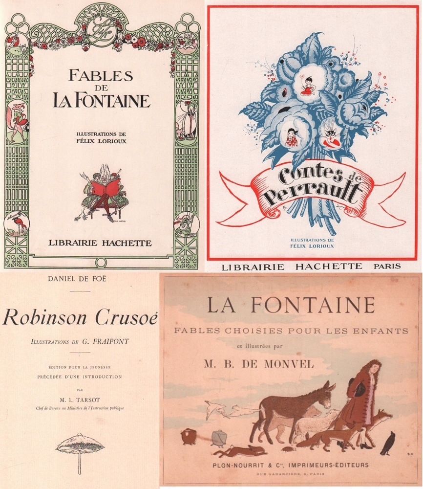 152 Kinderbuch – Konvolut mit 3 Exemplaren in französischer Sprache. Verschiedene Verlage und Jahre. Überwiegend 4°. Mit Abbildungen. Farbige Papp- oder Halbleinenbände. (50)