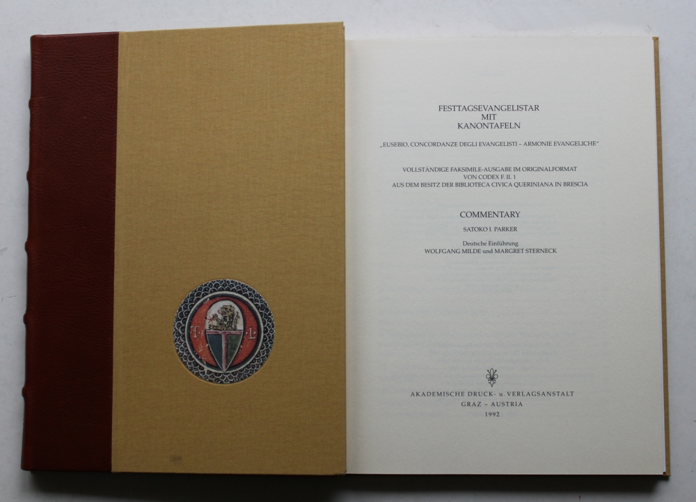 Exlibris im Innendeckel, 1. Vorsatzblatt mit Widmung. Die Seiten sind