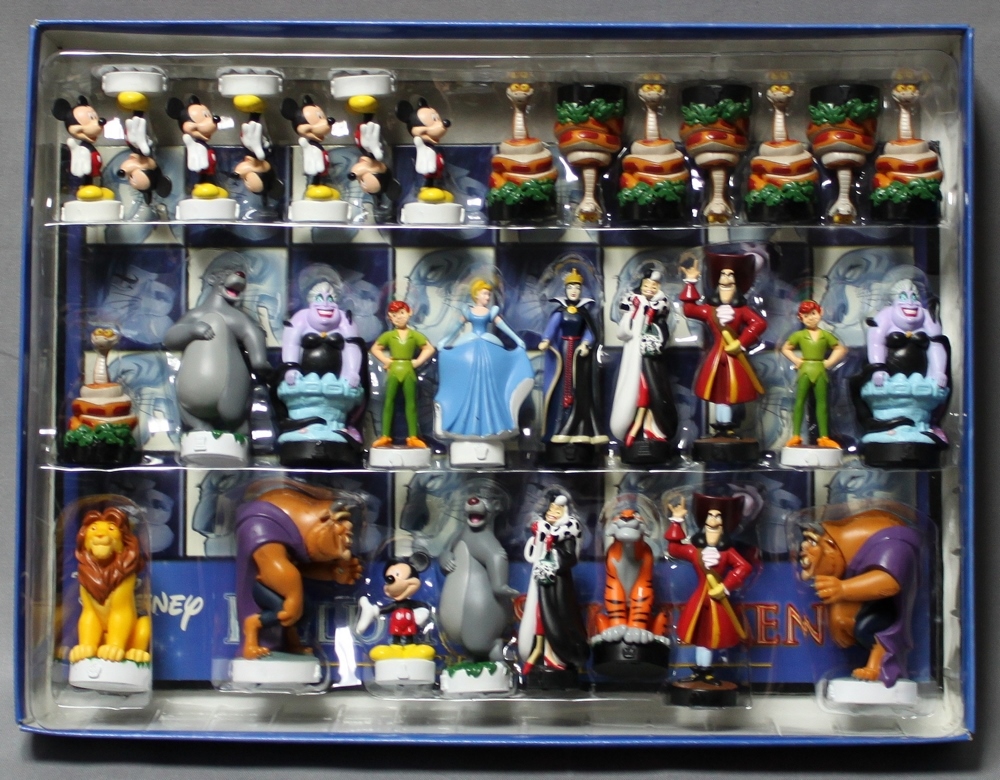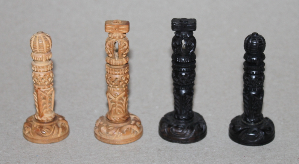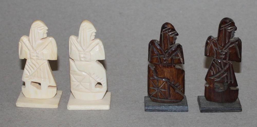 Schachspiel mit flach gearbeiteten Figuren nach Vorlagen aus dem