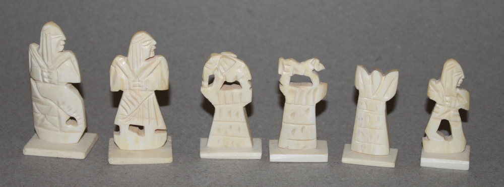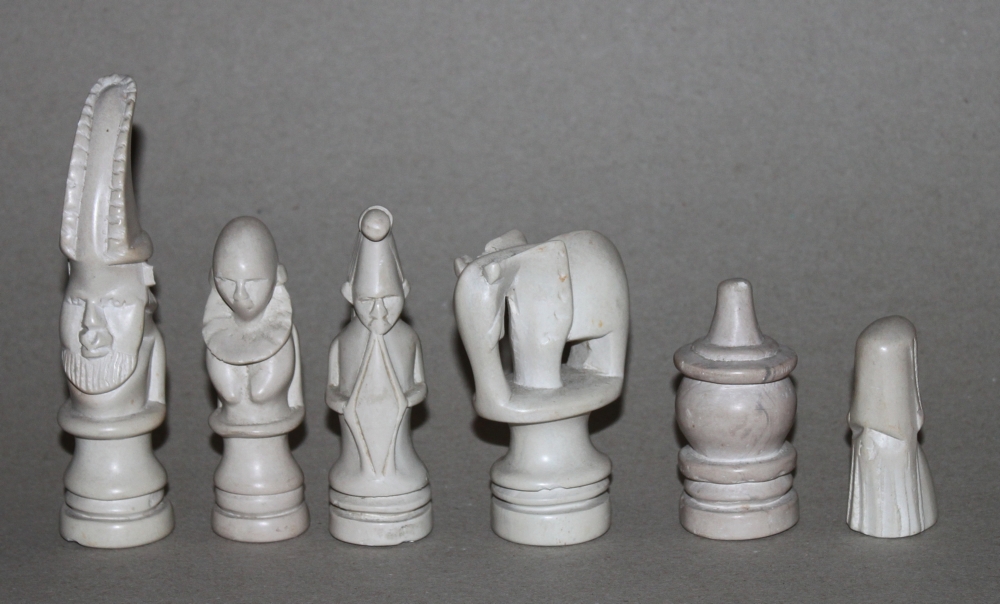 6 Einzelfiguren (Set 5 ?). Moderne Figuren im Staunton Stil in