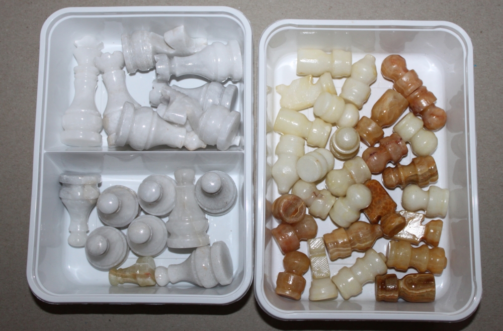 made of stone. All chessmen have minor chips and damages, a few of them with