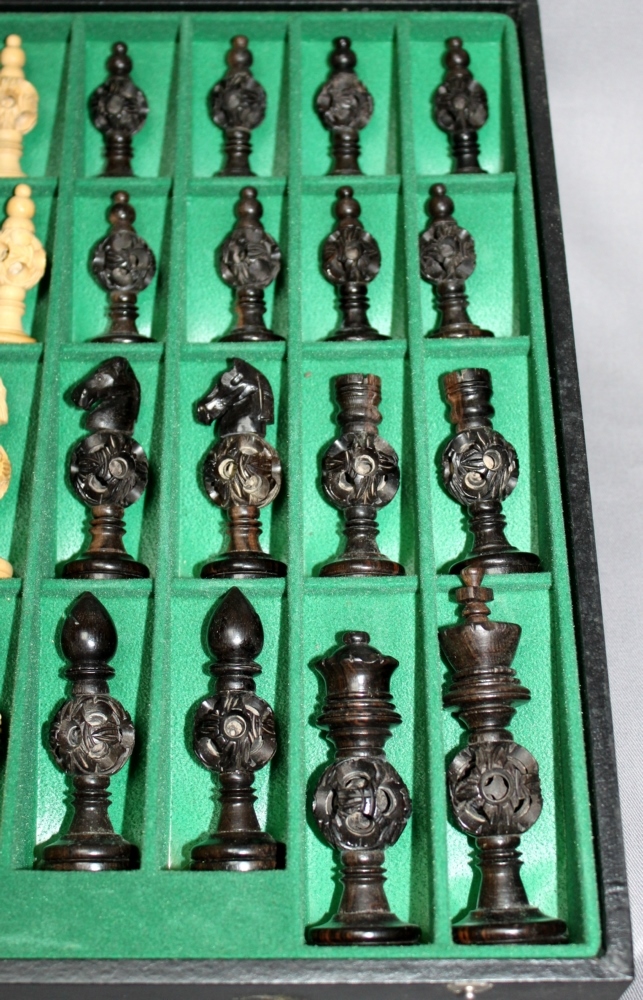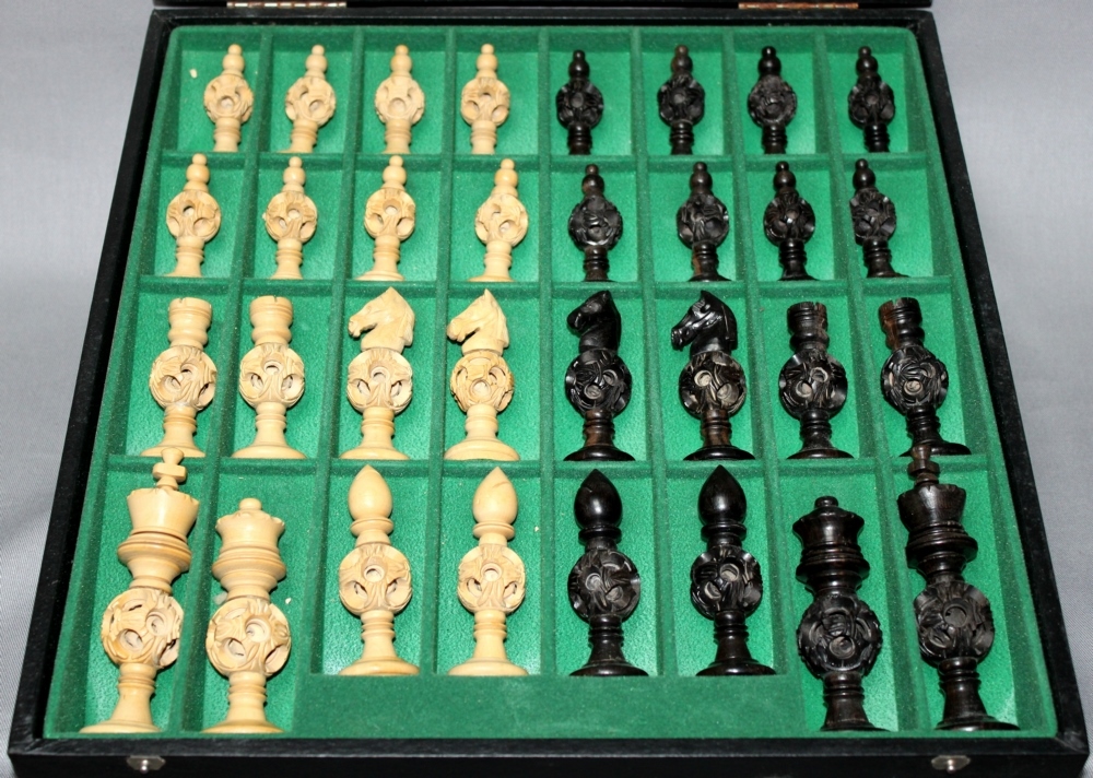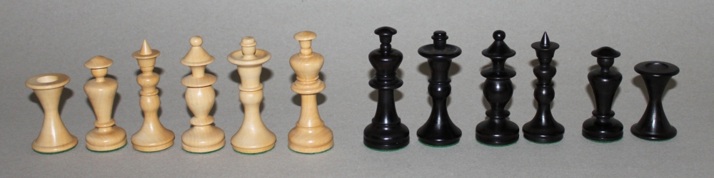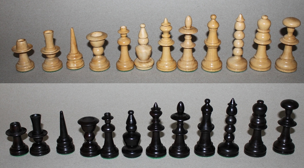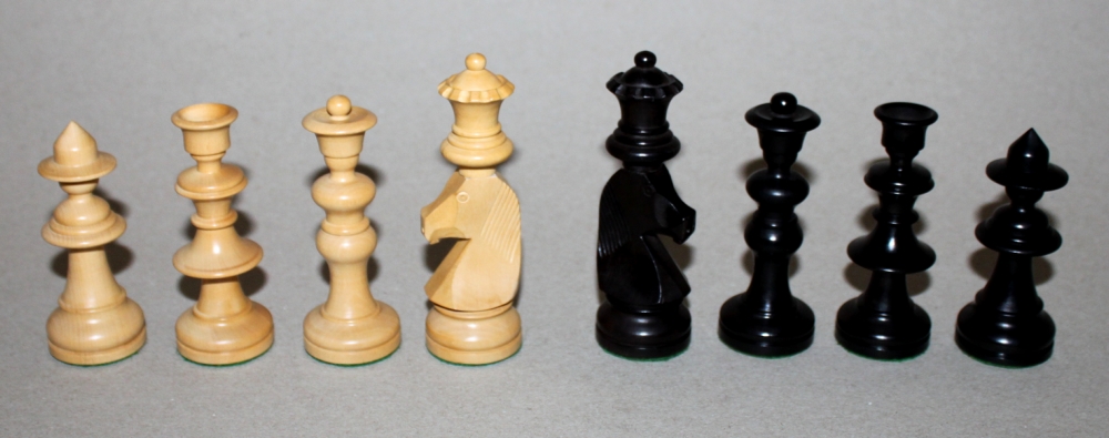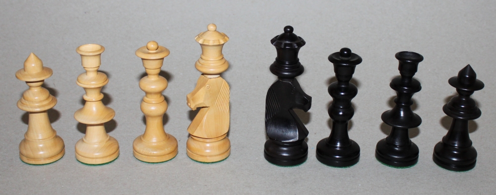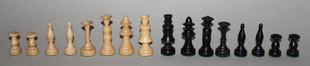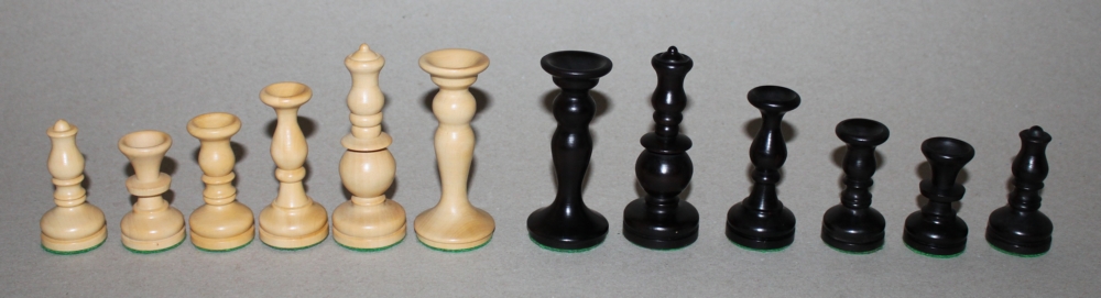 century. King 9,2 cm high, pawn 6 cm. Complete chess set. All chessmen are