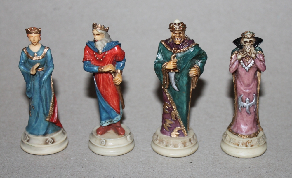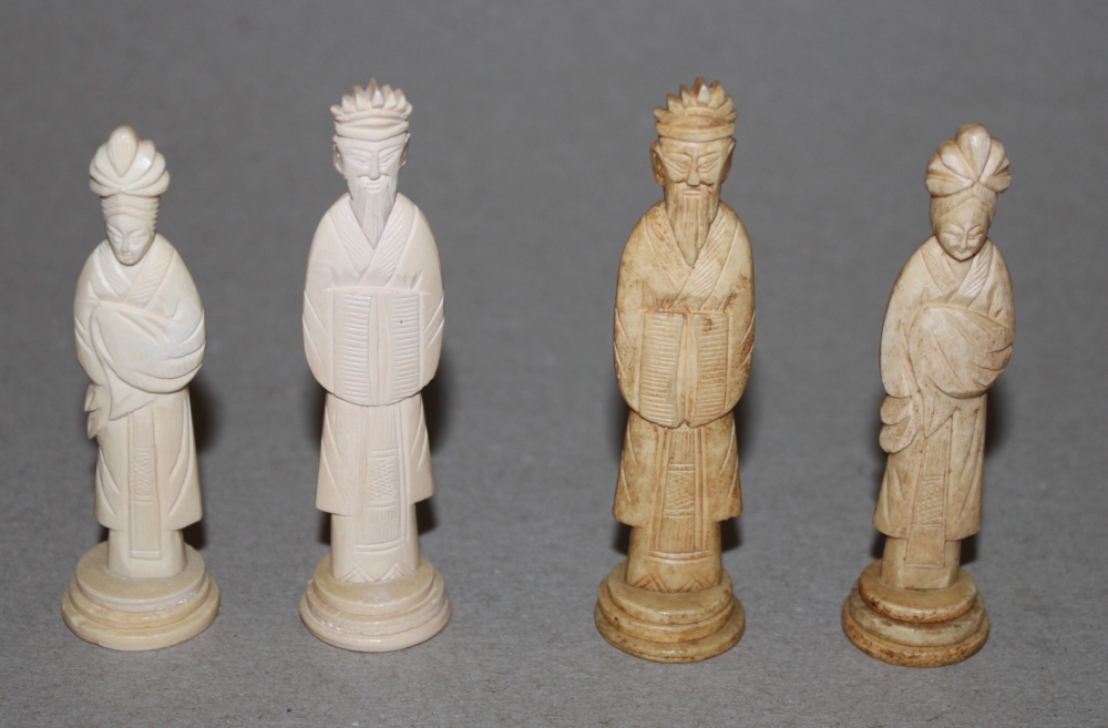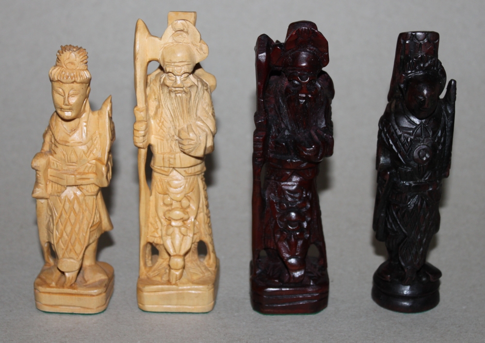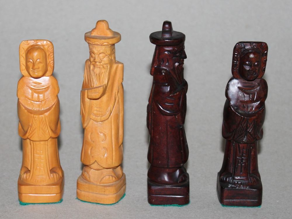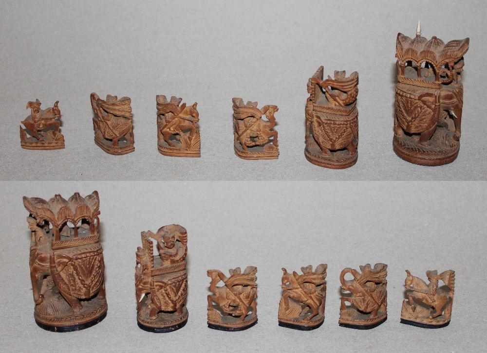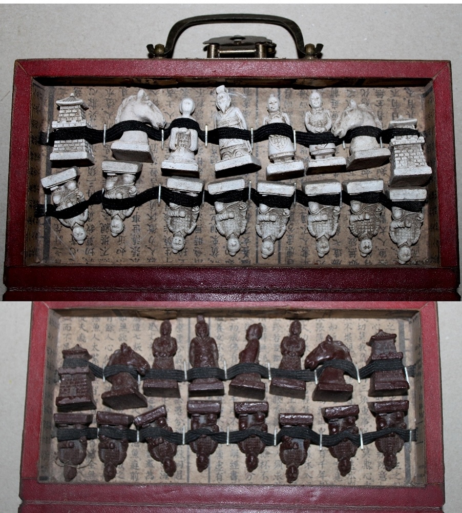 decorations. All chessmen are dusty and have signs of use, with minor chips