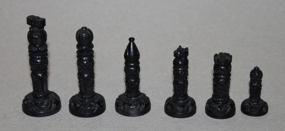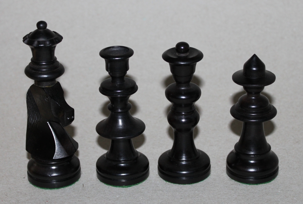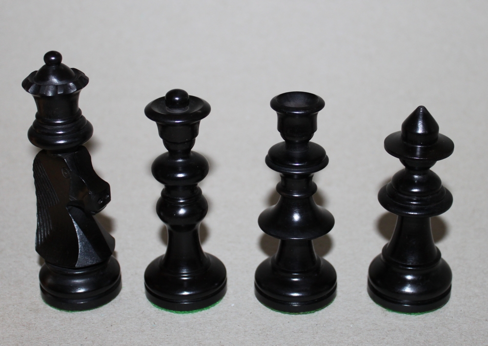 Eine Vogelschachfigur (Schwarze Dame) ohne Standfuß. Alle Figuren haben