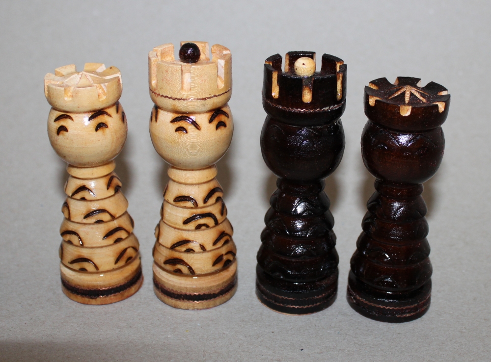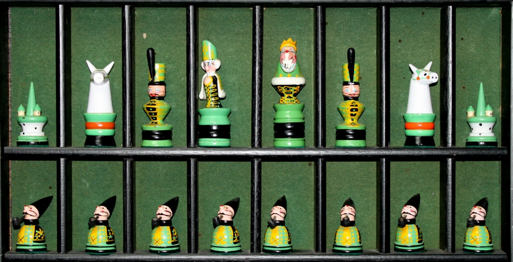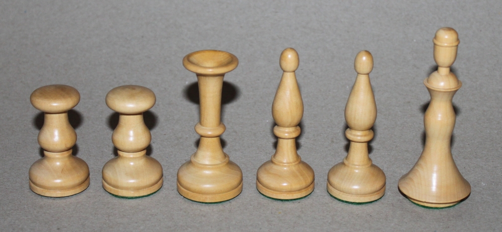 and 7 cm high, pawns 6,5 cm and 4,5 cm.