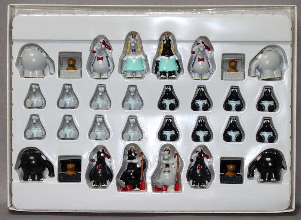 One figur (black lady) of the bird chess set is without the base. All chessmen