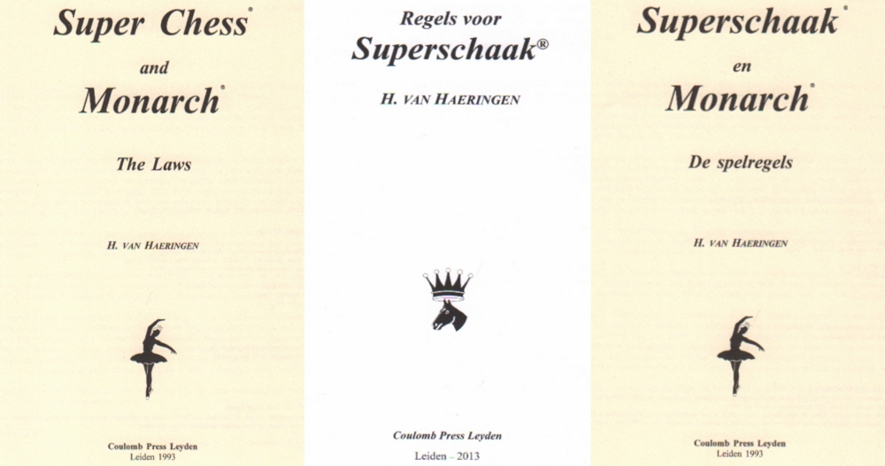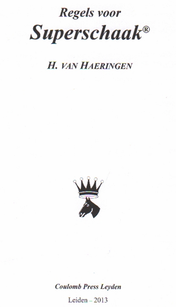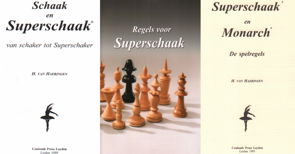 #327 Europa. Niederlande. Superchess – Exchess. Spielregeln. Haeringen, H. van. Schaak en Superschaak van schaker tot Superschaker. Leiden, Coulomb Press, 1999. 4°. Mit Diagrammen.176 Seiten. Originaler illustrierter Pappband. (24)
