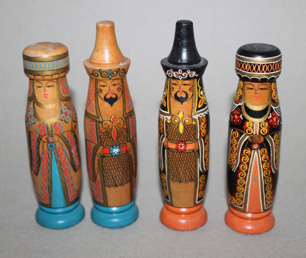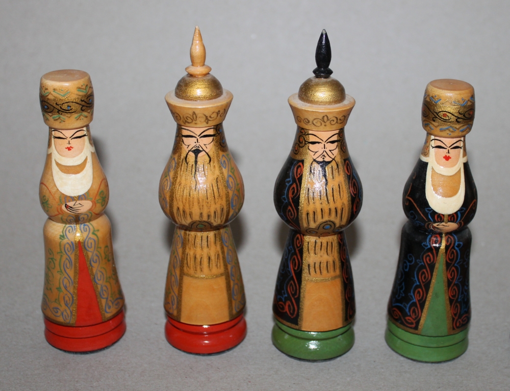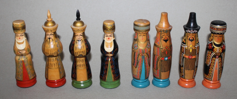 schlicht gearbeiteten Figuren, in Anlehnung an die russische Volkskunst bemalt.