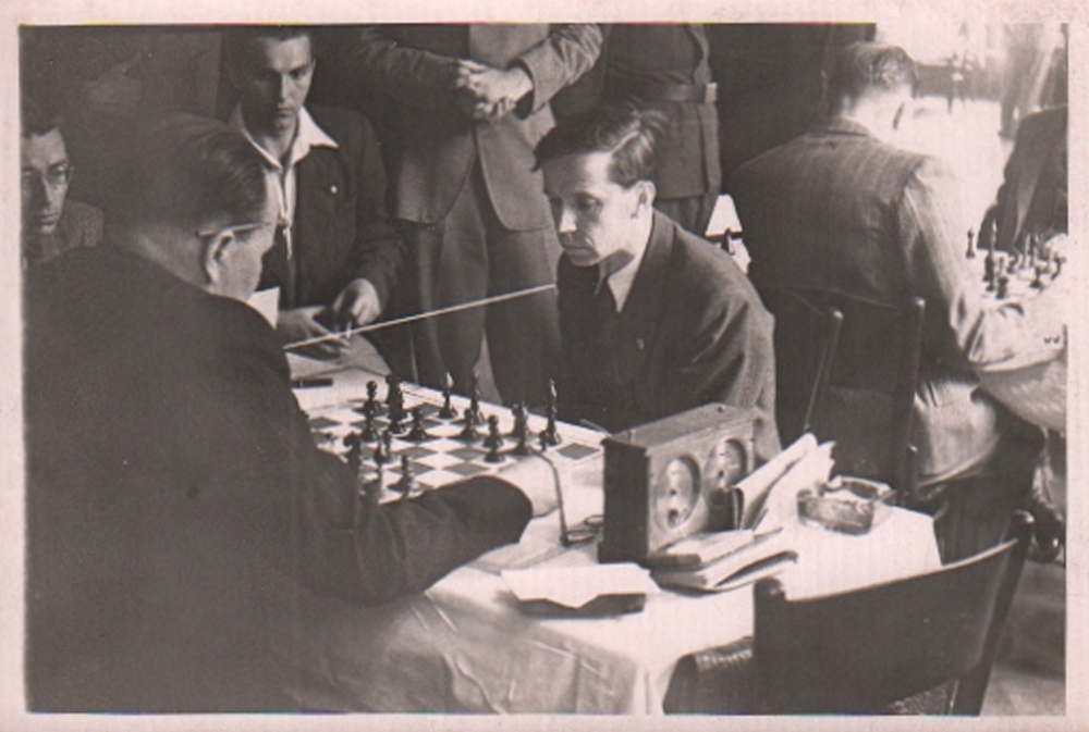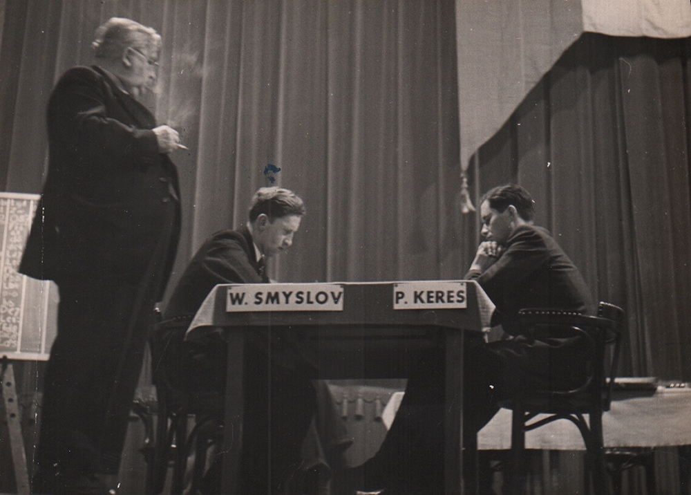 und Max Euwe sowie Wassili Smyslow und Paul Keres bei ihren jeweiligen Partien.