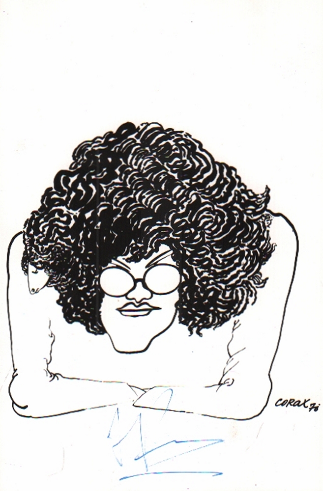 Schwarzweißes Foto von einer Porträtkarikatur des niederländischen Großmeisters