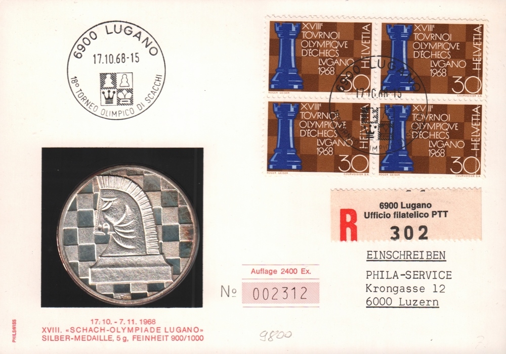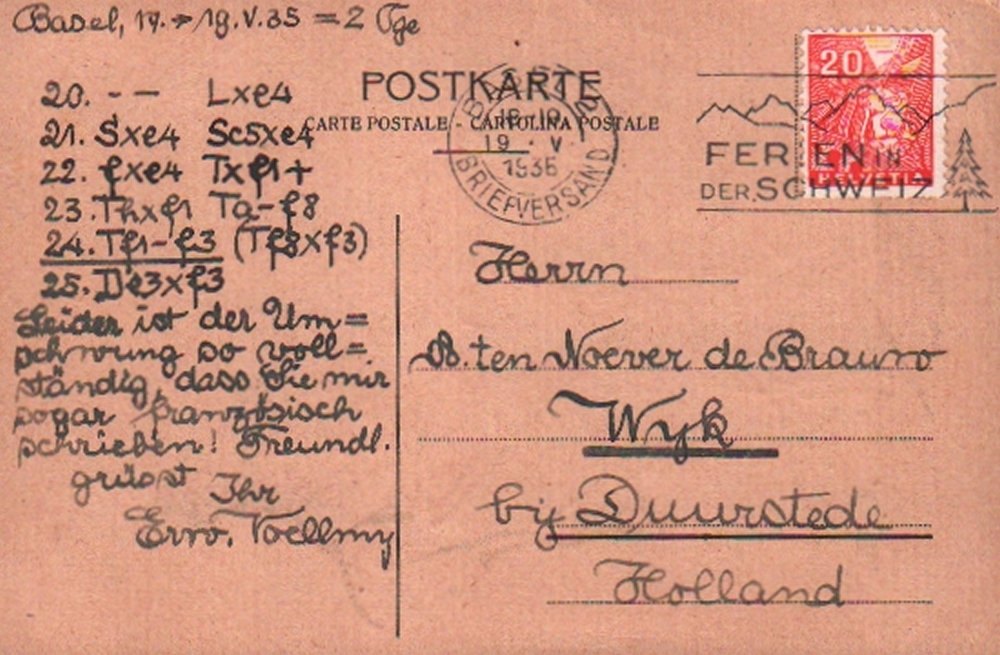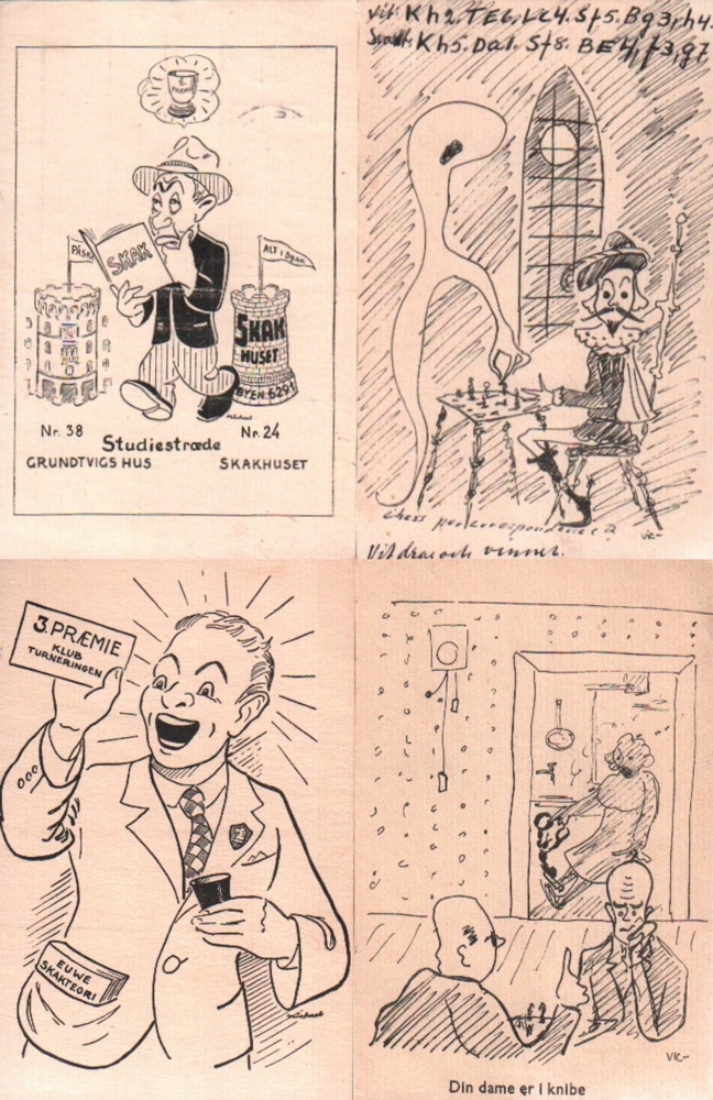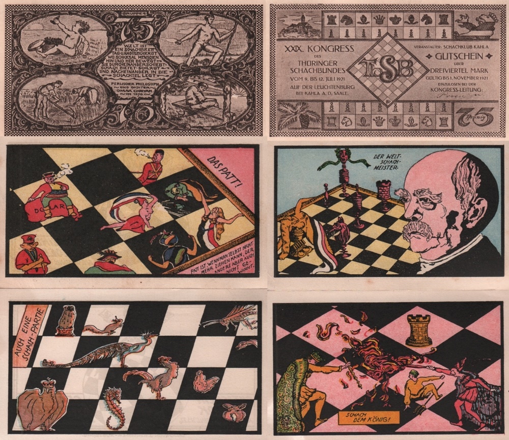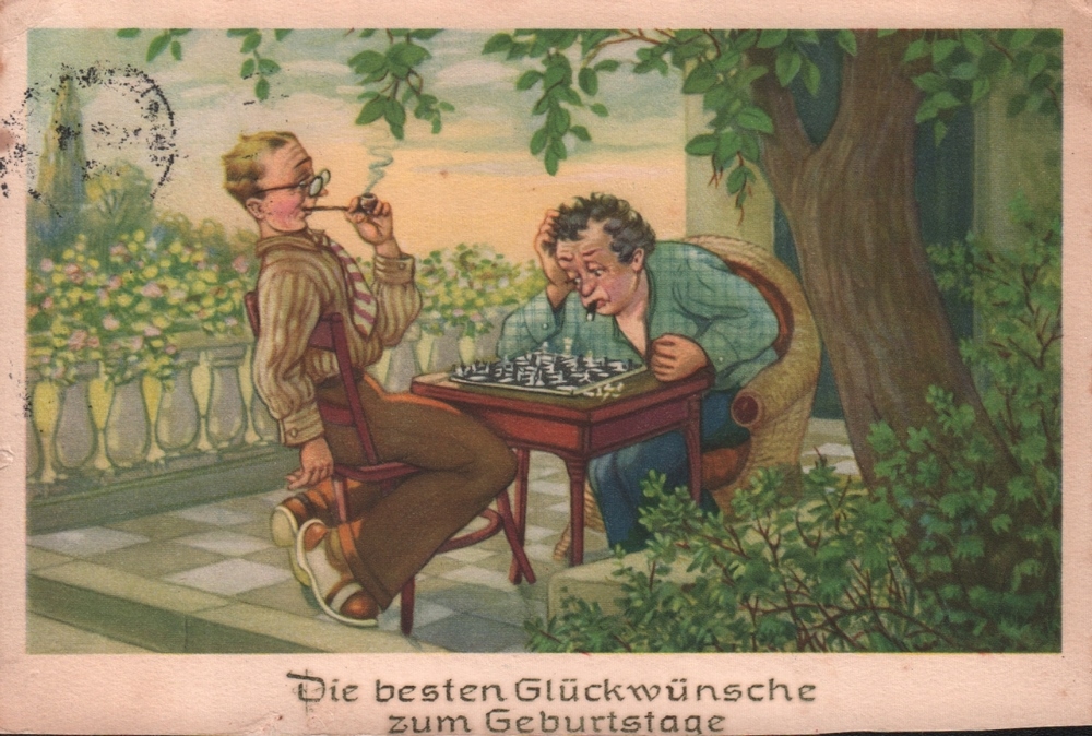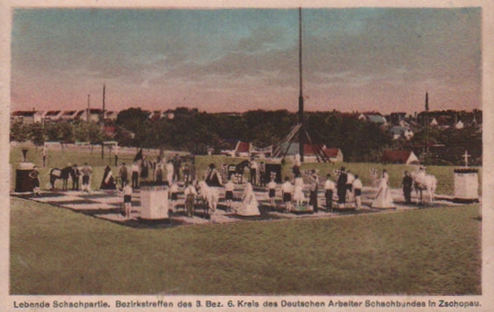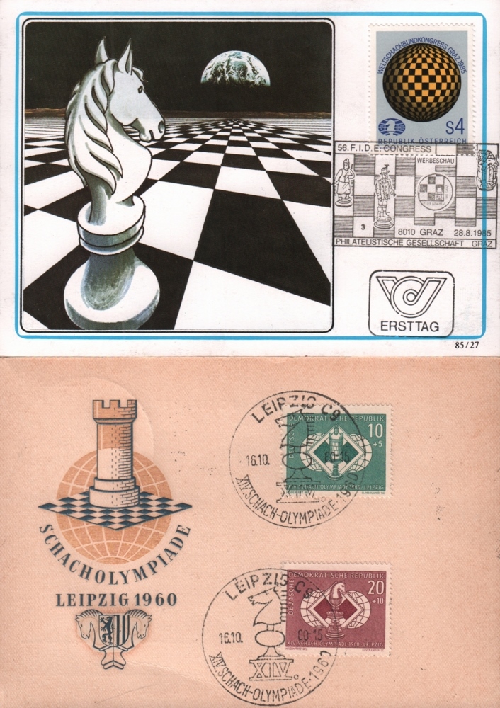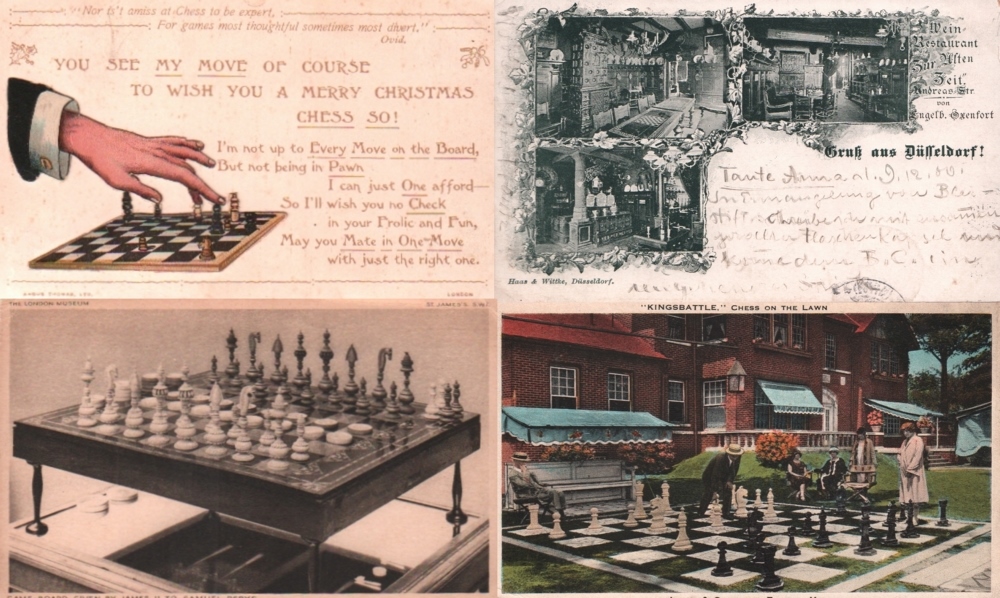 mehrfach vor. Einige Postkarten mit Schachsonderstempel oder