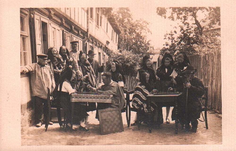 #472 Postkarte. Solmanis - Endzelins. Postalisch nicht gelaufene schwarzweiße Postkarte mit einer Aufnahme von der Partie Solmanis – Endzelins bei der 1. Meisterschaft der Lettischen Sozialistischen Sowjetrepublik in Riga 1941. Größe 14 x 9 cm. (40)