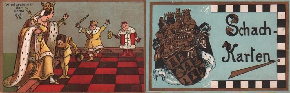 * Die Karten zeigen meist ein Schachmotiv, das zu den jeweiligen