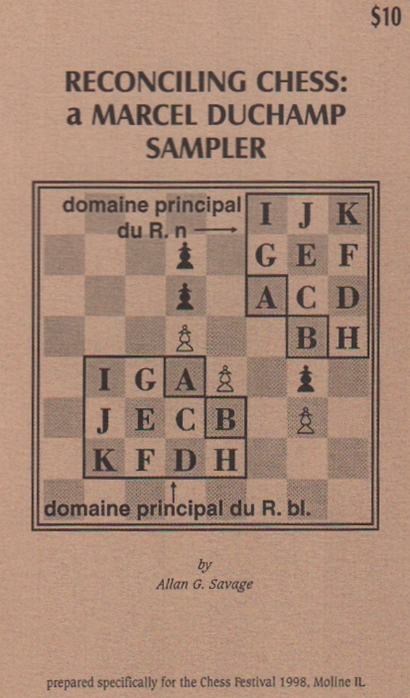 753 Duchamp. Savage, Allan G. Reconciling chess: a Marcel Duchamp sampler. Davenport, Thinkers' Press, ca. 1998. 8°. Mit 2 Textabb. und 9 Diagrammen. 20 Seiten. Original geheftet. (19)