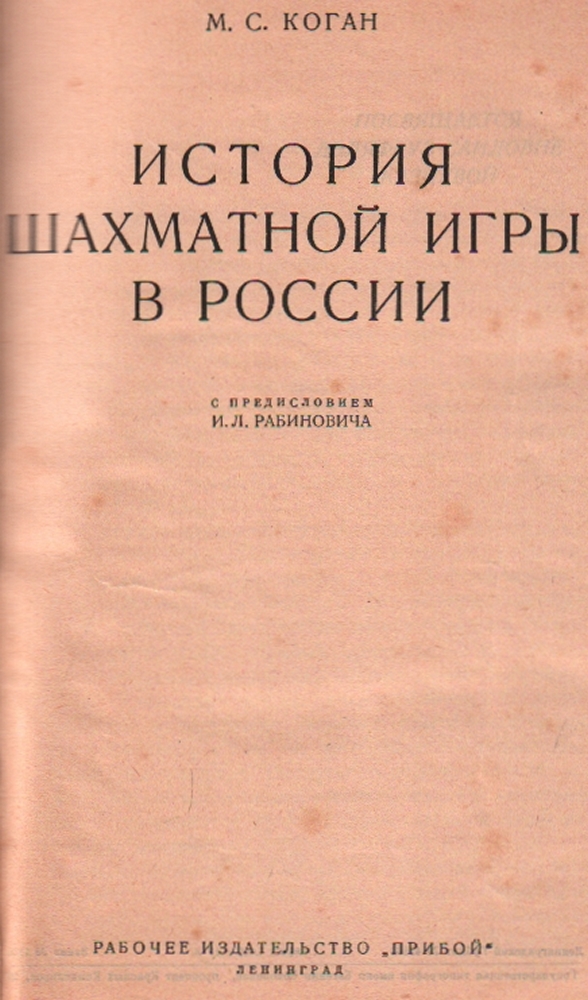 792 Kogan, M. S. Istorija schachmatnoj igry w Rossii. S predislowiem I. L. Rabinowitscha. Leningrad, Priwoj, (1927). 8°. Mit Tabellen und Diagr. 258 Seiten, 1 Bl. Orig. geheftet. (95)