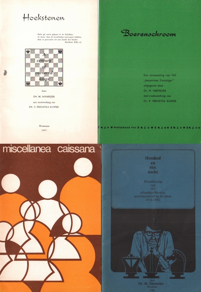 796 Niemeijer, Meindert. Konvolut von 9 Kleinschriften von M. Niemeijer oder von ihm herausgegeben, mit Schachproblemen aus der Zeit 1965 - 1983. 8°. Mit Diagrammen. Original geheftet. (19)