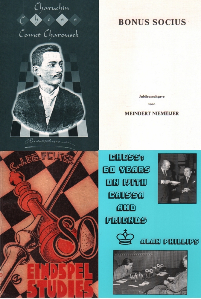 C.J. de Feijter: 80 Eindspelstudies, R. Stolze: Umkämpfte Krone. Die Duelle der Schachweltmeister von Steinitz bis Kasparow, V.
