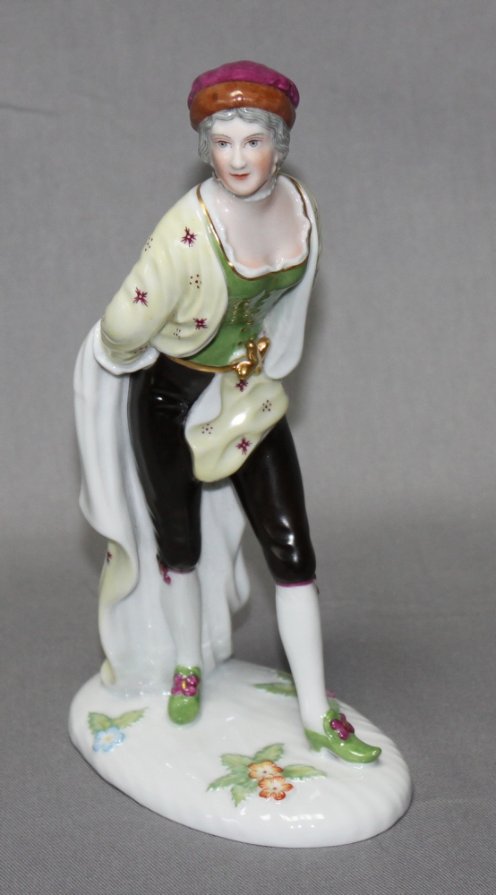 festlicher Kleidung. Polychrome Porzellanfigur.