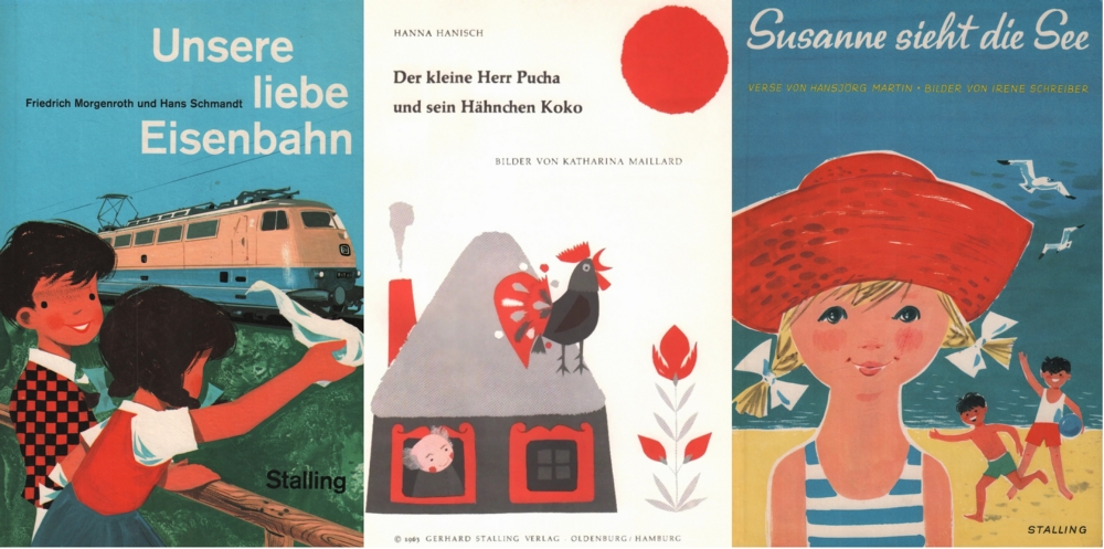 136 Kinderbuch. Hanisch, Hanna. Der kleine Herr Pucha und sein Hähnchen Koko. Oldenburg & Hamburg, Stalling, 1963. 4° Mit bunten Bildern von Katharina Maillard. 12 Bll. Orig. illustr. Halbleinenband. (29)