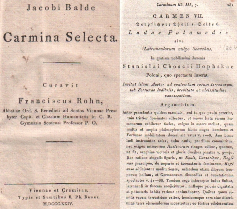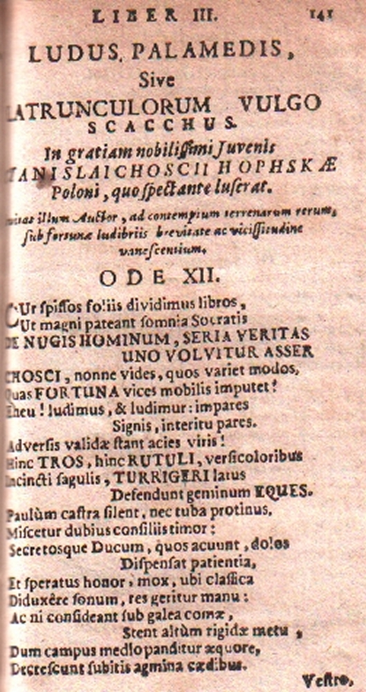 Auf den Seiten 141 – 144 mit einem Gedicht zum Schach: “Ludus