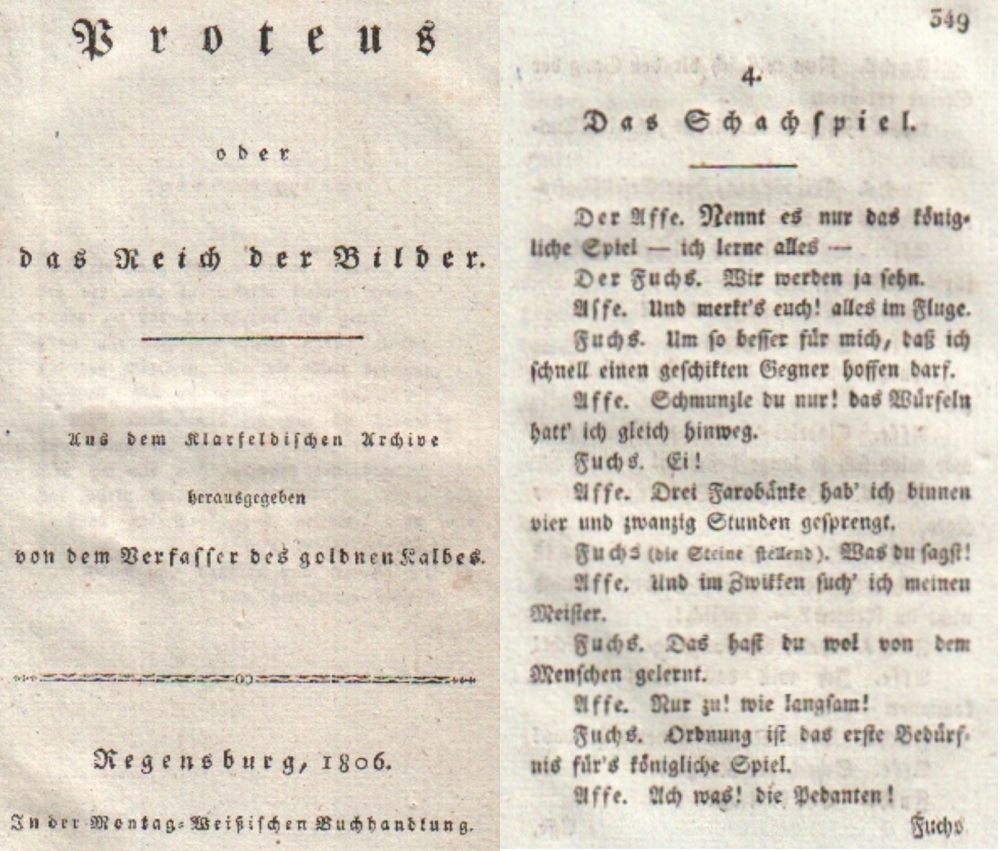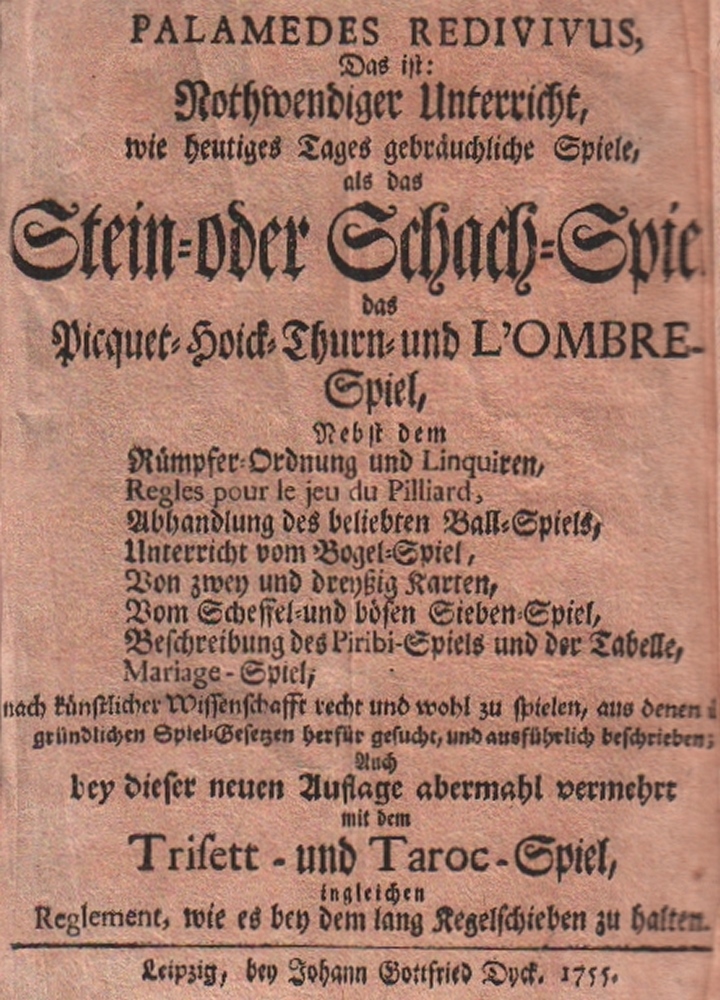 1777) Goedeke IV, 1, 836, 2; Hayn - G. VIII, 435; vergl. Kieler Schachkatalog