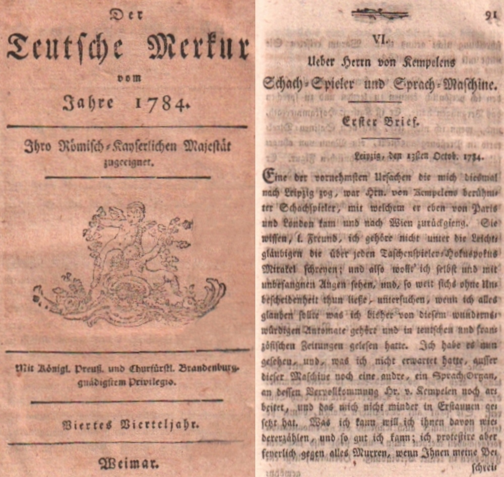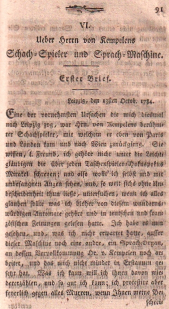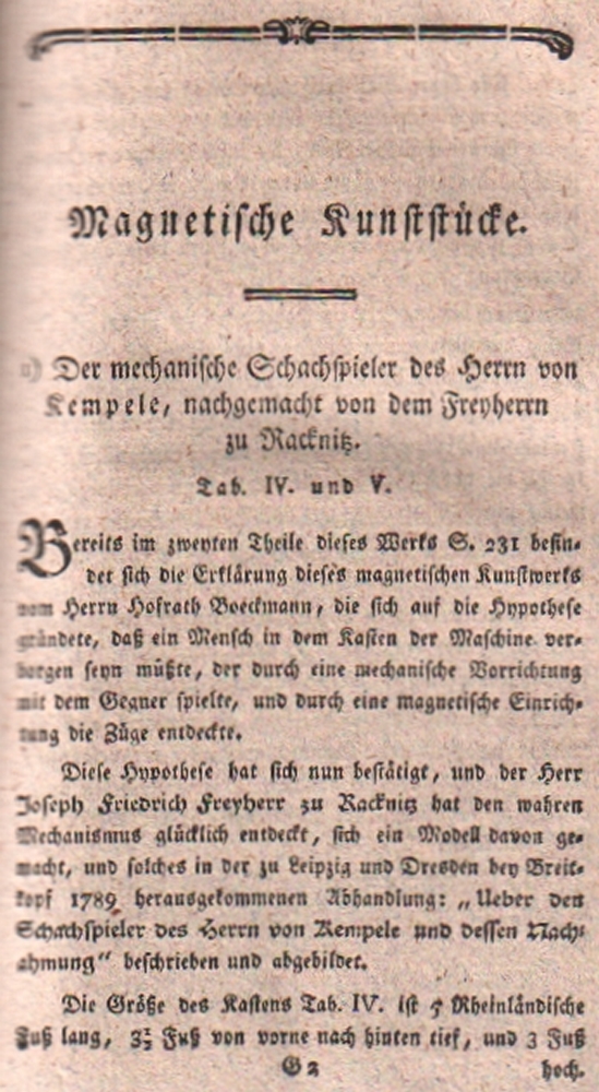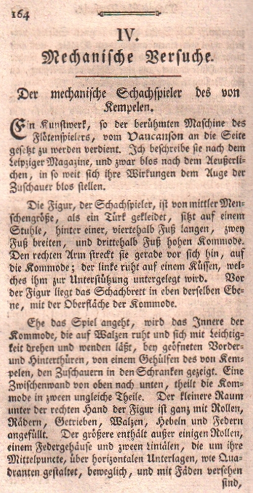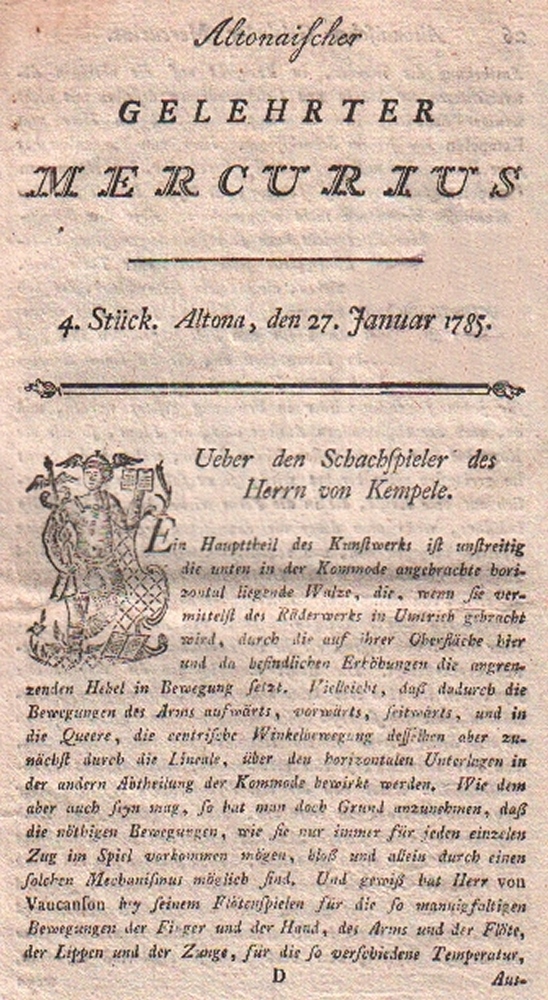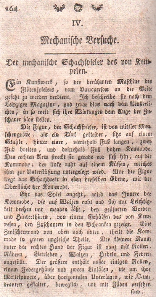 vermerkt) ein kurzer Beitrag über den Schachautomaten von Kempelen.