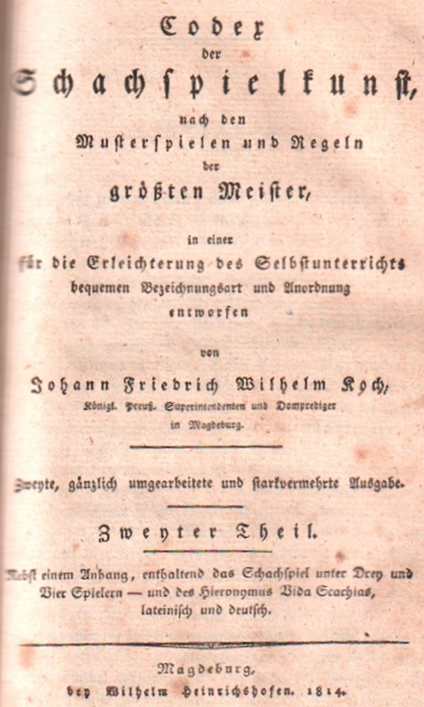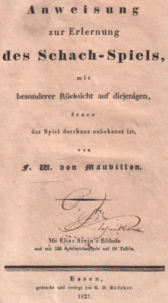 auch "le Philidor d'Allemagne". Seine 'Anweisung zum Schachspiel' bezeichnet van