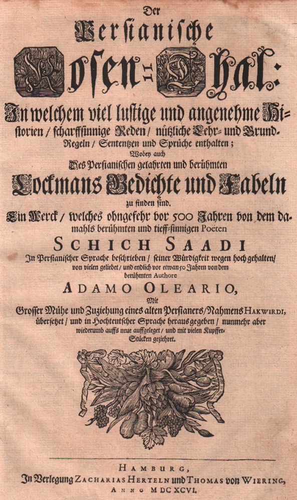 Innendeckel. Stempel auf Titel verso. Innen gebräunt und etwas fleckig,
