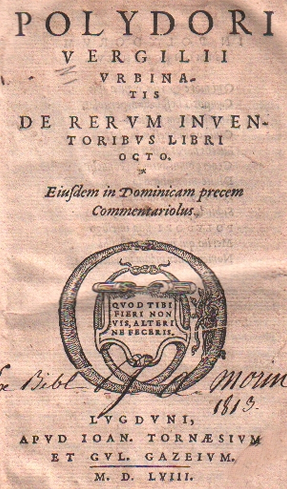 seiner Hauptwerke ist “De rerum inventoribus“, eine Darstellung über die
