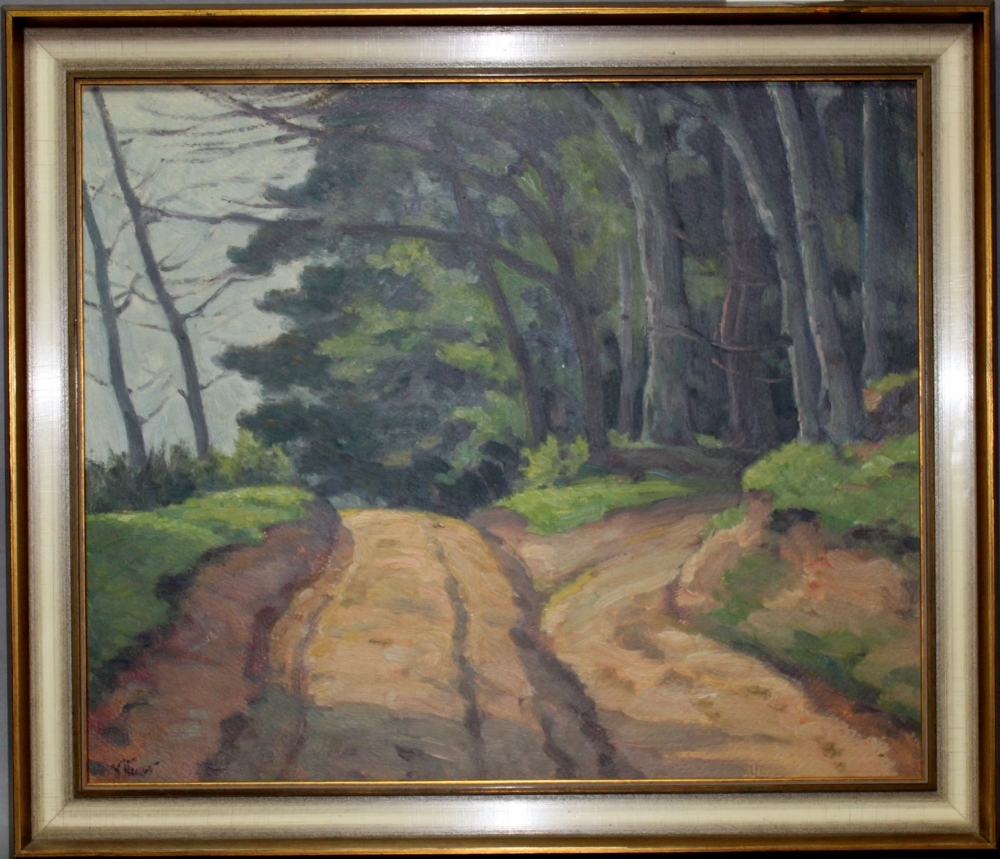 70 Neuss, Karl. “Waldrand im Frühling bei Gandersheim“. Ölmalerei auf Malpappe. Unten links signiert "K. Neuss", Arbeit aus den 1940er Jahren. Rückseitig mit Bezeichnung. Bildgröße 29 x 38,5 cm. Rahmengröße 35 x 44 cm (Querformat). (71)