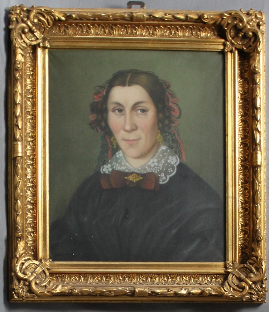 73 Porträt. Bürgerporträt. Wiegmann, Joh. Magd. Dorethea (geb. Henniges. Pastellmalerei (Mischtechnik) auf Papier, nicht signiert und datiert. Arbeit aus den 1860er Jahren. Bildgrößen 37,5 x 45 cm, Rahmengrößen 55 x 62 cm (Hochformat). (71)