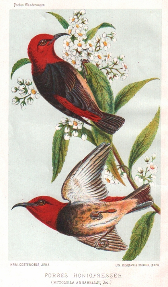 169 Asien.Malaysia. Forbes, Henry O. Wanderungen eines Naturforschers im Malayischen Archipel von 1878 bis 1883. Aus dem englischen von Reinhold Teuscher. 2 Bände. Jena, Costenoble, 1886. 8°. Mit farbigem Frontispiz, 22 Tafeln, vielen Textabb. und 4 gefalteten Karten. Orig. rote Leinenbände mit Schwarzverzierung und goldgeprägtem Titel auf den Vorderdeckeln und Rücken. (12)
